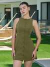 Andrea Bello Women Elegant Commuting Solid Color Front Button Sleeveless Mini Dress