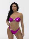 Swim Vcay Woman's Elegant Fuchsia Bandeau Shell Decor Bikini Swimwear Set, Beach Outfits For Summer Beach Vacation