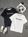 Teen Boys Vintage LA College Design, Short Sleeve Loose Soft Cool Tee, Casual School Wear Summer, Boys Tops