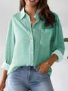 DAZY Vertical Stripe Drop Shoulder Ruffle Trim Shirt,Long Sleeve Tops,Fall Clothes