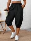 Breezaya Plus Size Women Woven Casual Fitted 3/4 Pants With Pockets, Black