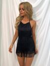 Joyfunear Women Sequin Fringe Backless Halter Romper