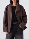 Zivah 20 Winter New Style, Christmas, New Year, Birthday, Party, Banquet, Preppy Style, Student Wear, Everyday Outing, Basic Versatile, Casual, Cruise Travel, Influencer Hot Style, Street Style, Elegant, Commuter, Business Casual, V-Neck Long Sleeve, Belt Waist, Metal Buckle Decoration, Real Pockets, Brown PU, Winter PU Jacket, Christmas Jacket, New Year Jacket, Women's Jacket