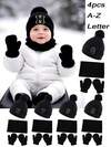 4pcs/Set Kids Knitted Hat, Scarf And Gloves Set, Includes 26 Letter Patterns, Suitable For Boys And Girls; Soft Winter Pom Pom Beanie; Baby Mittens; Children's Warm Scarf; Suitable For Autumn/Winter Outdoor Daily Wear.