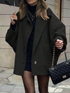 Women's Elegant Solid Color Pocket Front Button Turndown Collar Loose Wool Blend Sweater, Minimalist & Fashionable