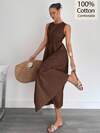 Siren Gaze Women's Sleeveless A-Line Long Linen Dress, Spring/Summer,Casual Dresses For Women,Elegant Dresses For Women, Party Brown Casual Brown