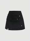SHEIN EZwear Solid Casual Pleated Black Hem Mini Skirt