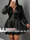 SHEIN CURVE+ Curve Plus Size/Autumn Clothes /Fall Women Clothes/Winter Clothes For Women/Winter ClothesPlus Size Deep V-Neck PU Leather Dress, Casual Punk Style, Suitable For Halloween, Dark, Black Dress Plus Size Dress Plus Size Faux Leather Dress Plus Size V Neck Dress Plus Size Club Dress Curvy Dress/Autumn /Winter
