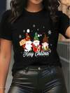 Women's Christmas Gnome Graphic Tee Merry Christmas Print Short Sleeve T - Shirt Casual Holiday Party Top Plus Size Friendly Xmas Gift Tshirt