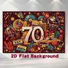 2D Flat 1pc 70s-Style Party Banner With A Retro Design Featuring Black Vinyl Records, Cassette Tapes And A Disco Ball On A Bright Red Background. This Durable Polyester Photography Backdrop Is Ideal For Disco Ball Decorations For Homes, Bars, Cafes, Studios, And Events With A Retro Theme. The High-Quality Fabric Is Available As A 2D Flat File.