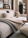 1pc Striped/Solid Color Sofa Cover, Cushion Cover, Armrest Cover, Backrest Cover, Plush Sofa Seat Cover, Anti-Slip, Universal For Four Seasons