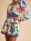 Travachic Women's Vacation Casual Printed Lace Decor Romper Parrot Print Romper Summer Playsuit Resort Wear Tropical Playsuit, Tropical Print Romper, Floral Romper,Casual Woman Style, Fall Outfits For Women, Chic Autumn,Going Out Outfit,Country Style For Women,National Day, New Year Clothes, Luxury Elegant Graduation, Tropical Romper