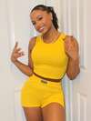 Steph T Minimalist Casual Basic Sleeveless Cropped Tank Top And High Waist Fitted Shorts 2 Pieces Set, Ribbed Knit Women Summer Fashion Outfit Co Ord Yellow Matching Y2K