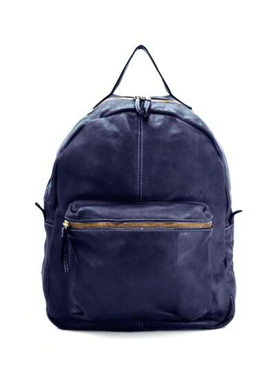Men's/Women's Backpack In Genuine Vintage Calfskin Leather – Adjustable Shoulder Straps, Zip Pockets, Made In Italy - Blu - View 1