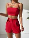 Muchica Solid Crop Cami Top & Roll Up Hem Shorts