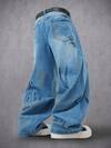 Manfinity Denimwave Autumn/Winter Young Street Style Light Washed Blue Wide Leg Distressed 3D Print Jeans Loose Wide Leg Vintage Washed COUPLE Blue Street Hang Out Distressed Jeans For Y2K