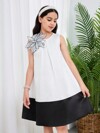 SHEIN Tween Girl Vacation Mini Dress With Elastic Ruched Bust, Tie Neck, Bowknot, And Tiered Ruched, Can Wear Inner Or Outer,Summer Dresses ,Solid White Dress