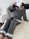 Dream Adore Plus Size Women Butterfly Print V-Neck Pajama Set , Fall & Winter Clothes