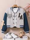 SHEIN Tween Girls 3D Doll Decor Letter Graphic Sweatshirt Jacket, Autumn