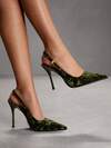 CUCCOO SZL Women's Pointed Toe Apricot Mesh Fabric Metallic Buckle Backstrap Open Toe Fashion Pumps, Elegant For Office And Commute