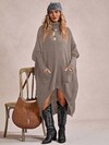 1pc Women Plus Solid Color Knitted Button Mock Neck Bat Wing Long Sleeve Cape Sweater, Slim Fit Elegant Autumn Winter Fall