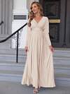 EVERPRETTY Contrast Color Lace V-Neck Floor-Length Wedding Dress With Train, Elegant Long Sleeve White Bridal Gown