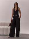 SHEIN BAE Elegant Sleeveless Solid Black Wide Leg Jumpsuit, Versatile Outfit For Daily Wear, Dating, Party, Asymmetrical Design, Suitable For Valentine's Day, Everyday Wear, Classy