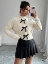Elenzga French Bow Knit Soft & Fluffy Long Sleeve Sweater For Women, Winter