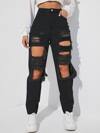 SHEIN EZwear Y2K Cut Out Ripped Frayed Carrot Black Jeans