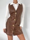 Calvaya Solid Button Front Corduroy Overall Dress