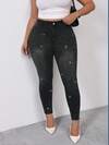 SHEIN ICON High Waist Plus Size Elastic Waistband Cropped Skinny Jeans, Blue