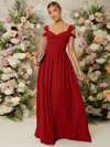 UNITHORSE V-Neck Ruffle Sleeve Pleated Leaf Net Mesh Splice Party Evening Dress (Random Cut), Bride Dress, Birthday Women Outfits, Graduation Dress, Formal Dress, Bridesmaid Dress