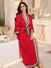 LuxeNights Plus Size Women's Plain Color 3/4 Sleeve Arc Design Faux Silk Bathrobe, Fall, Winter