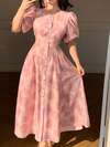 DAZY Romantic Floral Print Lantern Sleeve Midi Dress With Flared Skirt, Elegant For Vacation