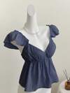 Poéselle Women's Y2K Solid Color Pleated Hem Fashionable Bandeau Top