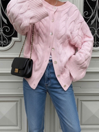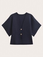 Damtröja med rund hals, modern minimalistisk fuzzy, ribbad stickning, normal längd, nedsänkta axlar och 3/4-ärmar