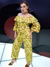SHEIN Unity Plus Off Shoulder Floral Print Ruffle Trim Lantern Sleeve Jumpsuit