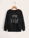 SHEIN Tween Girl Casual Round Neck Long Sleeve Letter Print Sweatshirt, Suitable For Autumn And Winter