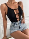 Hotletica Swiss Dot Contrast Guipure Lace Cut Out Back Sleeveless Blouse