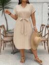SHEIN VCAY Plus Size Women's Solid Color V-Neck Batwing Short Sleeve Casual Dress Lounge Dress