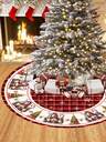 90cm/60cm julgranskjol, blommönster på röd rutig bas, julgranskjol i textil, högtidsdekoration