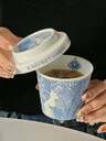 En liten keramikkopp med handritad jordgubbsblomma, unik handgjord söt blommugg, perfekt för restauranger, vardagsrum, kaféer och sammankomster, perfekt present till kaffeälskare