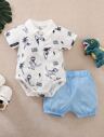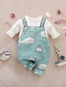Yierying Baby Boy Half Button Graphic Embroidery 2 In 1 Jumpsuit